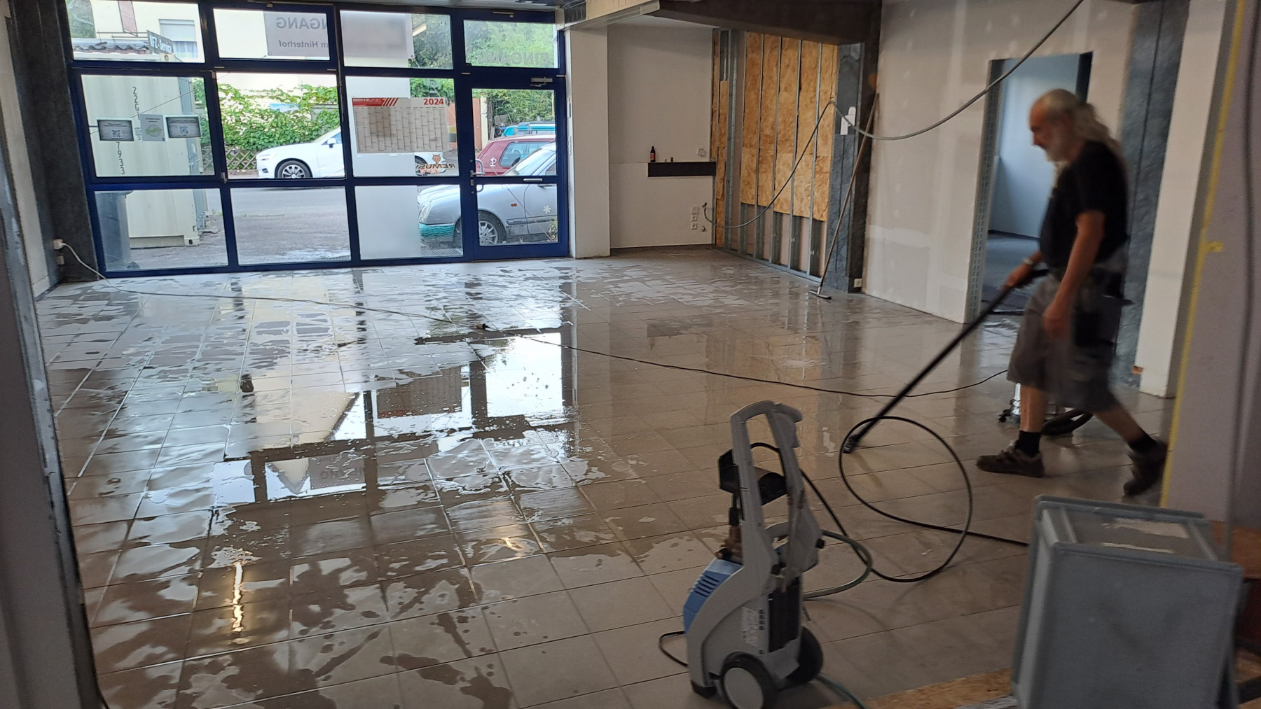 AnkündigungenDer Vorraum/Empfang ist fertig22. Juli 2024 0 Im Vorraum/Empfang haben wir die Bodenfliessen von alten Farbresten befreit, gereinigt und mit einer Versiegelung versehen. Und die Trockenwand – zwischen dem öffentlichen Teil und dem Büro – wurde angebracht.