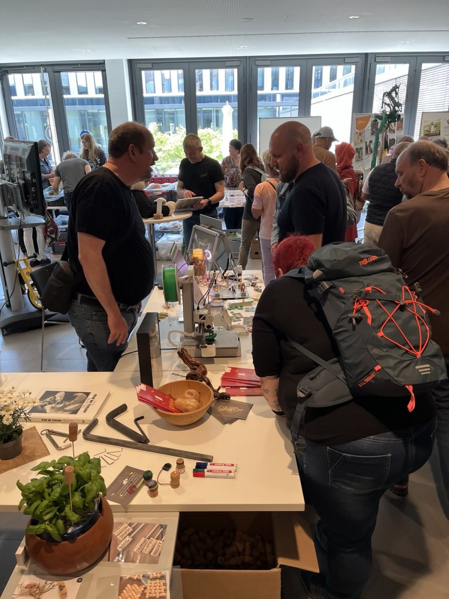 Besucher:innen aller Altersgruppen hatten die Gelegenheit, in die Welt des digitalen und traditionellen Handwerks einzutauchen – vom 3D-Druck und ESP32 Projekten im Fablab über kreative Upcycling-Ideen bis hin zu nachhaltiger Textilverarbeitung. Es gab viel zu entdecken, auszuprobieren und zu besprechen – ganz im Sinne von Offenheit, Teilen und gemeinschaftlichem Lernen.