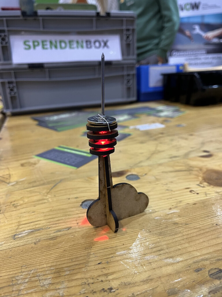 Die Menschen zeigten reges Interesse an all unseren Angeboten und viele tolle Gespräche wurden geführt. Der HOBBYHIMMEL präsentierte eine beeindruckende Vielfalt an Aktivitäten, darunter eine aufgebaute Drechselbank, einen Tisch mit Pfeil und Bogen und einen ultimativen Basteltisch. Dort entstanden unter Anleitung Kreisel, Flaschenöffner, Teelichter und sogar der Stuttgarter Fernsehturm. Mit bis zu 48 Menschen gleichzeitig am Stand und unzähligen eigenhändig gebauten Fernsehtürmen erlebten wir einen regen Andrang und großes Interesse.