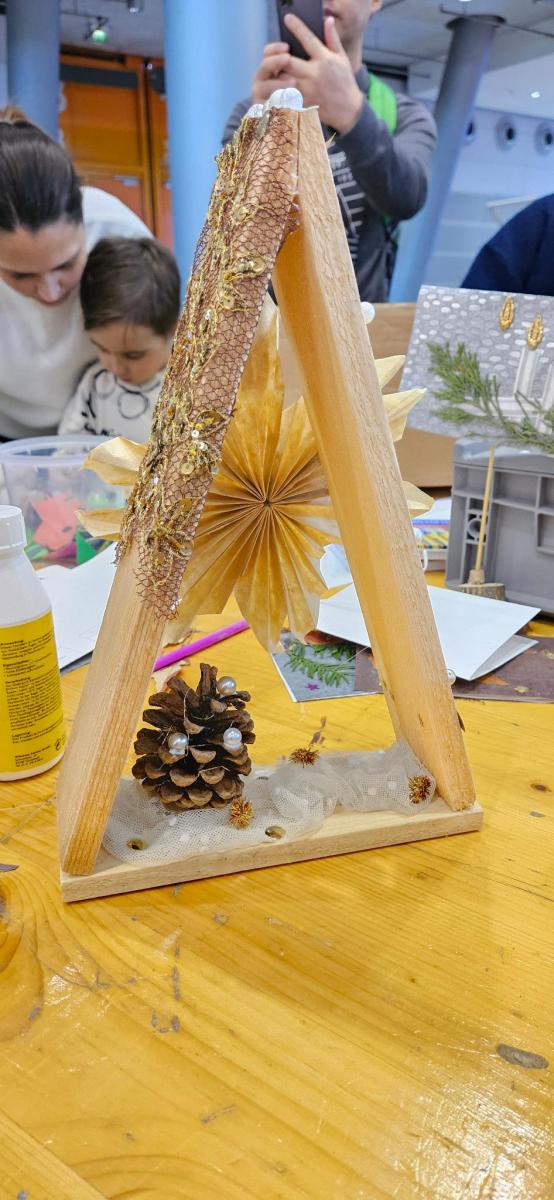 • Weihnachtsbasteleien wie kleine Weihnachtsbäume aus Holzscheiben und Holzperlen oder individuell gestaltete Weihnachtskarten mit unserer Papierpresse.