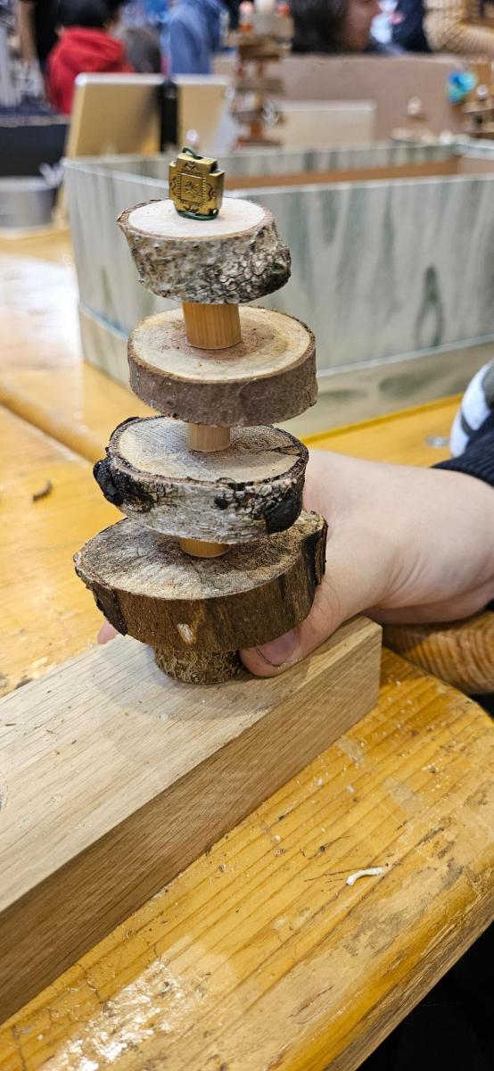 • Wer handwerklich aktiv werden wollte, konnte einen Teelichthalter aus einer Baumscheibe anfertigen.
